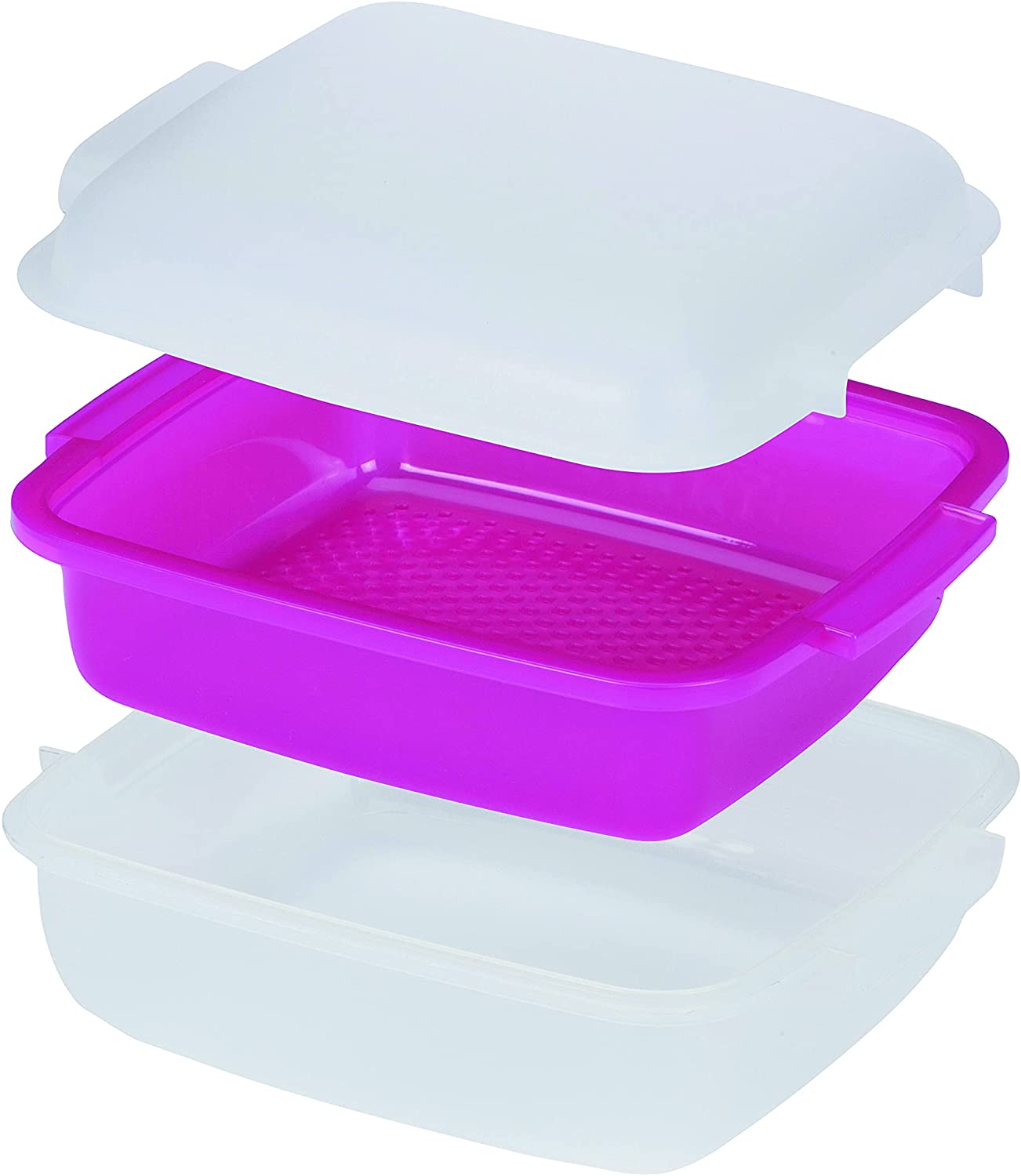 Vaporiera originale quadrata Leonardo per forni a microonde. Grazie alla cottura a vapore, i valori nutritivi dei cibi vengono mantenuti inalterati, come il loro vero sapore e la digeribilità. La vaporiera Leonardo possiede anche la funzione di bollitura. Possiede una forma rettangolare. È possibile lavarla a mano oppure all'interno della lavastoviglie.
